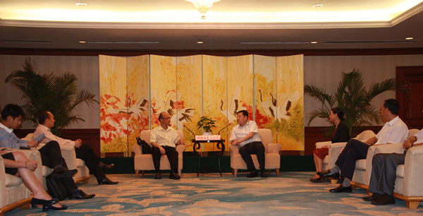 2014年8月12日,勝科城鎮(zhèn)發(fā)展公司副總裁梁國龍、鐘俊文在廣西自治區(qū)商務廳副廳長韋朝暉、北海市副市長石昆的陪同下赴中國電子北海產(chǎn)業(yè)園,就以北部灣智慧生態(tài)電子城項目為基礎,雙方進行戰(zhàn)略合作有關事宜進行實地考察??疾炱陂g,自治區(qū)黨委常委、北海市委王小東書記進行了親切會見,北海市政府林山青常務副市長帶隊與考察團進行了座談。