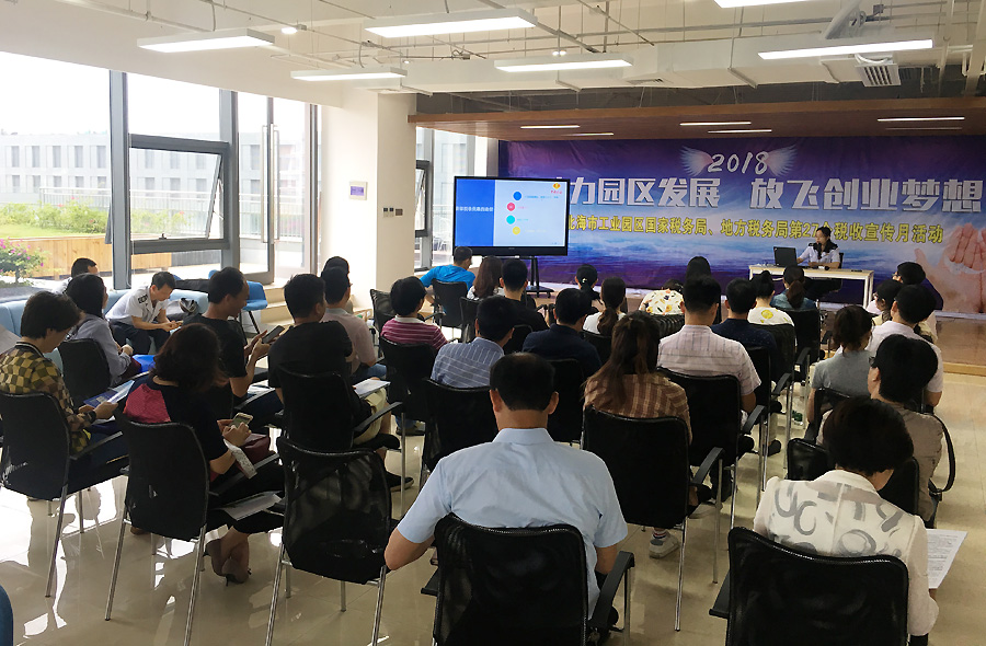 2018年4月25日,北海市工業(yè)園區(qū)國家稅務局、地方稅務局聯(lián)合在中國電子北部灣眾創(chuàng)空間舉辦了以“助力園區(qū)發(fā)展,放飛創(chuàng)業(yè)夢想”為主題的第27個稅收宣傳月活動,中國電子北部灣孵化器40余家企業(yè)代表參與了此次活動。